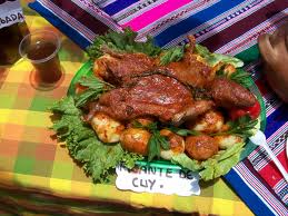 Aliñar los cuyes con los ajos, el comino y la sal. Dejarlos reposar hasta el día siguiente. Barnizarlos con achiote y asarlos en carbón, pinchándolos para que vayan cocinándose homogéneamente.